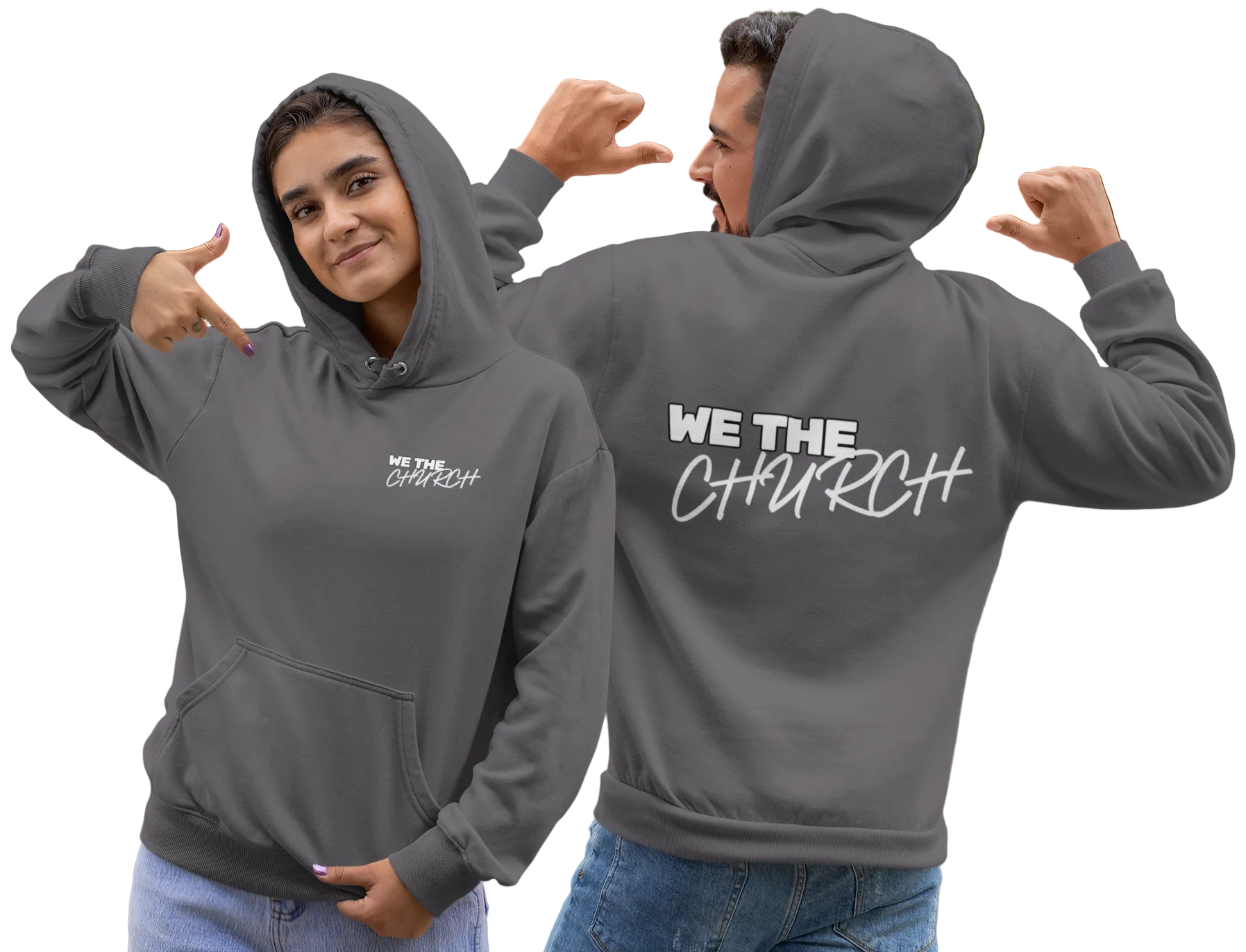 Designed for everyday comfort and timeless faith-centered style, the 'We The Church' Dual Logo Hoodie is a versatile essential for any wardrobe. Featuring a small, understated brand logo on the front left chest and a bold, large logo centered on the back, both in neutral colour—this hoodie delivers a clean look with a strong statement of identity.