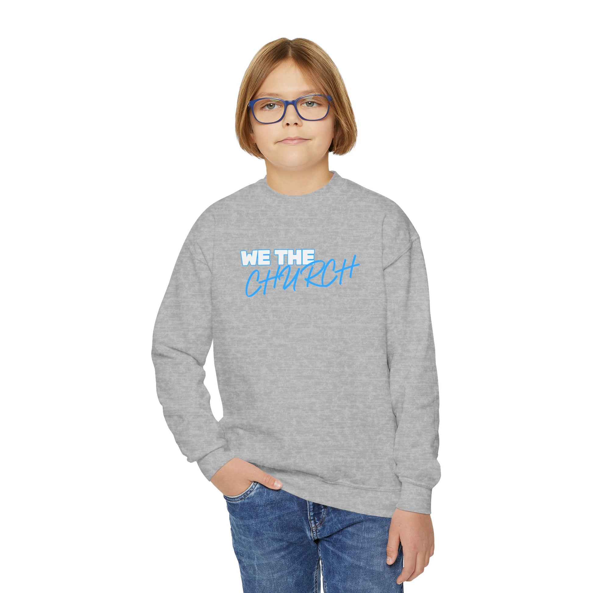 Comfortable, durable, and designed for everyday life, the 'We The Church' Youth Sweatshirt is a go-to layer for school days, church events, and relaxed weekends. Featuring a large brand logo centered on the chest, in brand blue colour—this sweatshirt makes a bold yet clean statement of faith and identity.